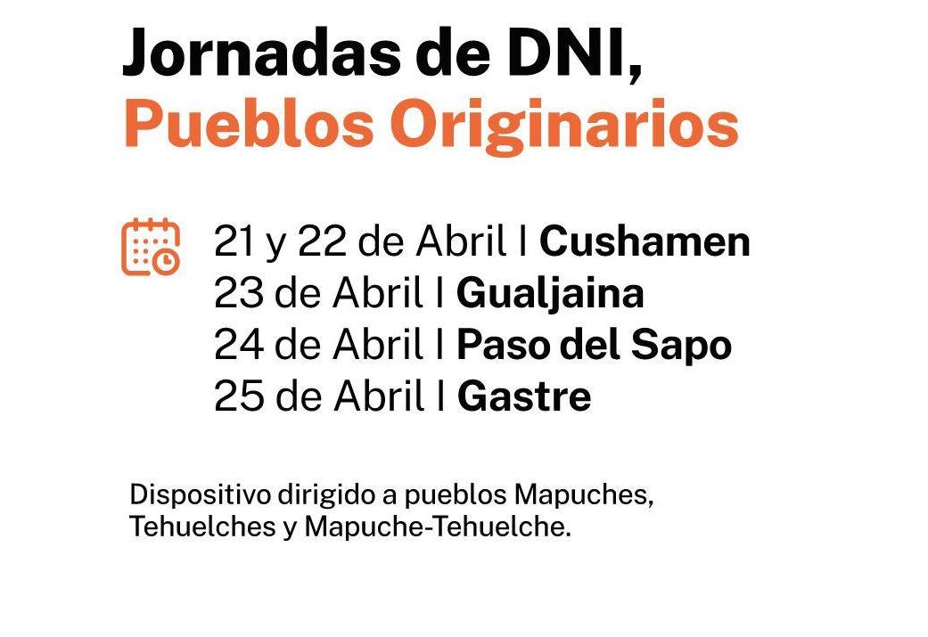 En el marco de la Semana de los Pueblos Originarios, el Gobierno del Chubut recuerda que llevará adelante un operativo territorial que permitirá acercar herramientas de documentación y trámites vinculados a la identidad a comunidades Mapuche, Tehuelche y Mapuche-Tehuelche, mediante una acción articulada entre organismos provinciales y nacionales.
