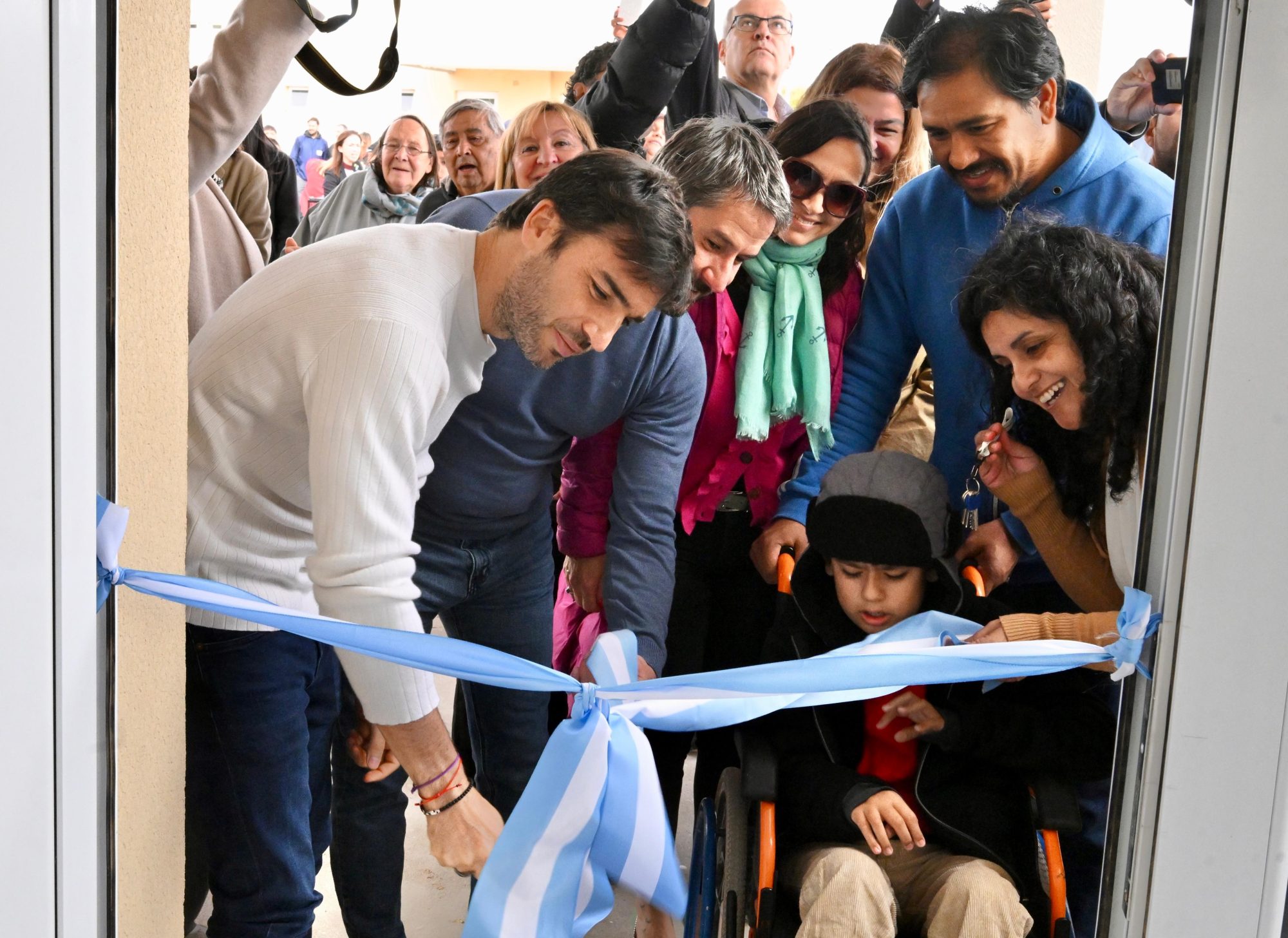 Tras entregar las llaves de sus viviendas a las 17 familias de Trelew, el gobernador realizó el tradicional corte de cintas en una vivienda adaptada y construida para una familia que esperó 22 años para cumplir el sueño de la casa propia.