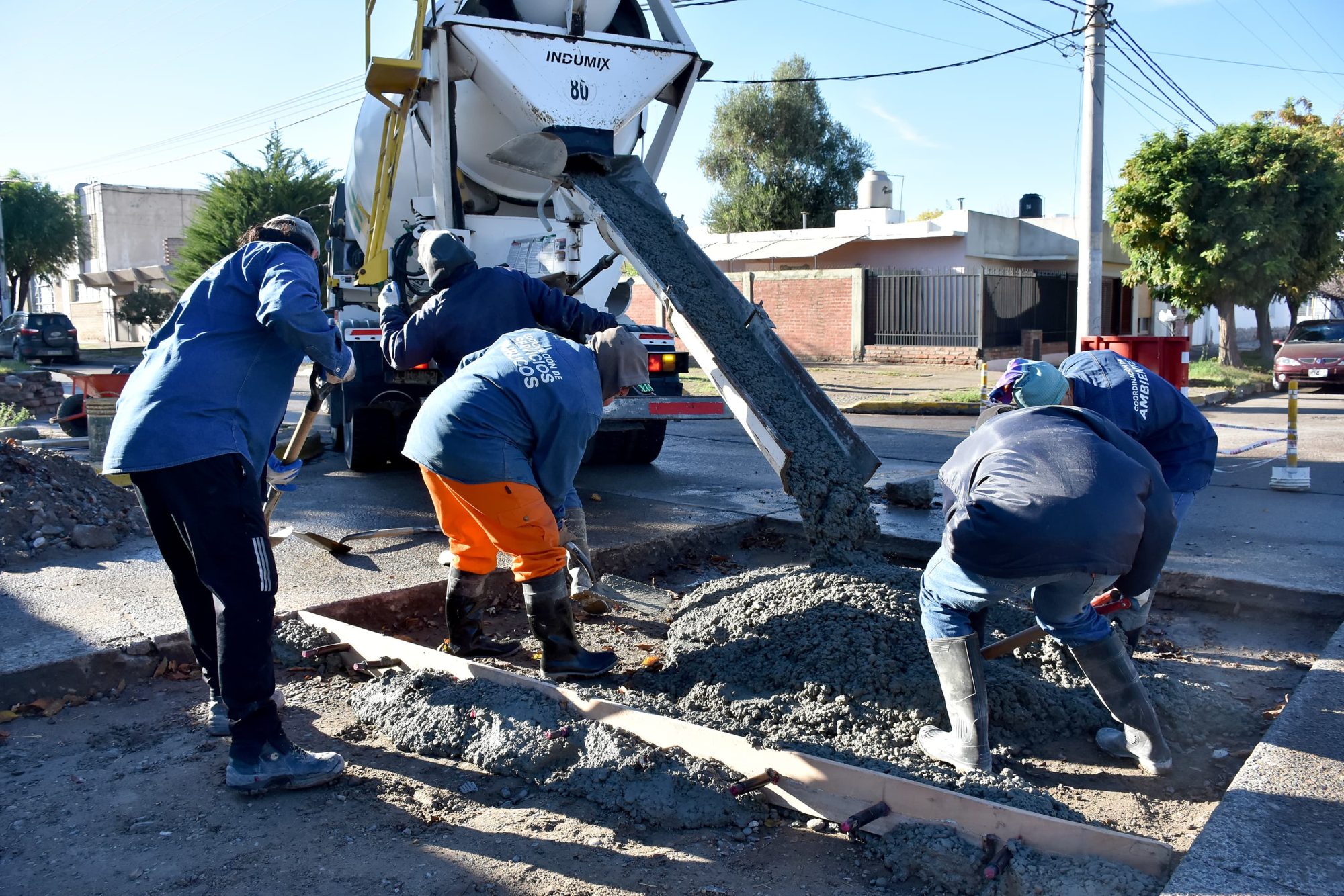Este miércoles, se trabajó en el hormigonado de la avenida Guillermo Rawson y su intersección con Pecoraro.