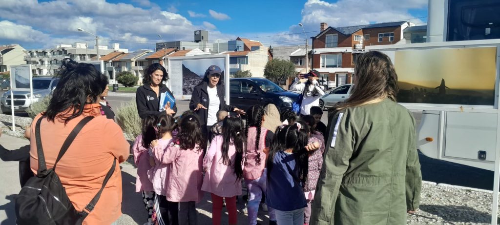 Luego, acompañados por docentes y familias, 40 estudiantes viajaron en colectivo hasta la Plazoleta de los Pingüinos, ubicada en Boulevard Brown casi esquina Vesta, al sur de la ciudad. Este espacio, intervenido por GPS, cuenta con una muestra fotográfica y esculturas en hierro de pingüinos de Magallanes, que rinden homenaje a estas icónicas aves marinas.