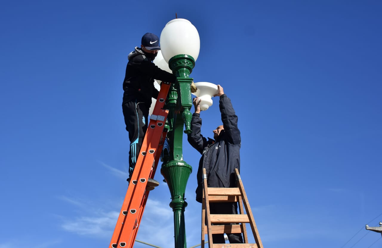 Operarios locales realizan, de manera paulatina, el recambio del sistema lumínico. La obra aportará una mayor visibilidad a la zona, generando un impacto en la visual y también en la seguridad.