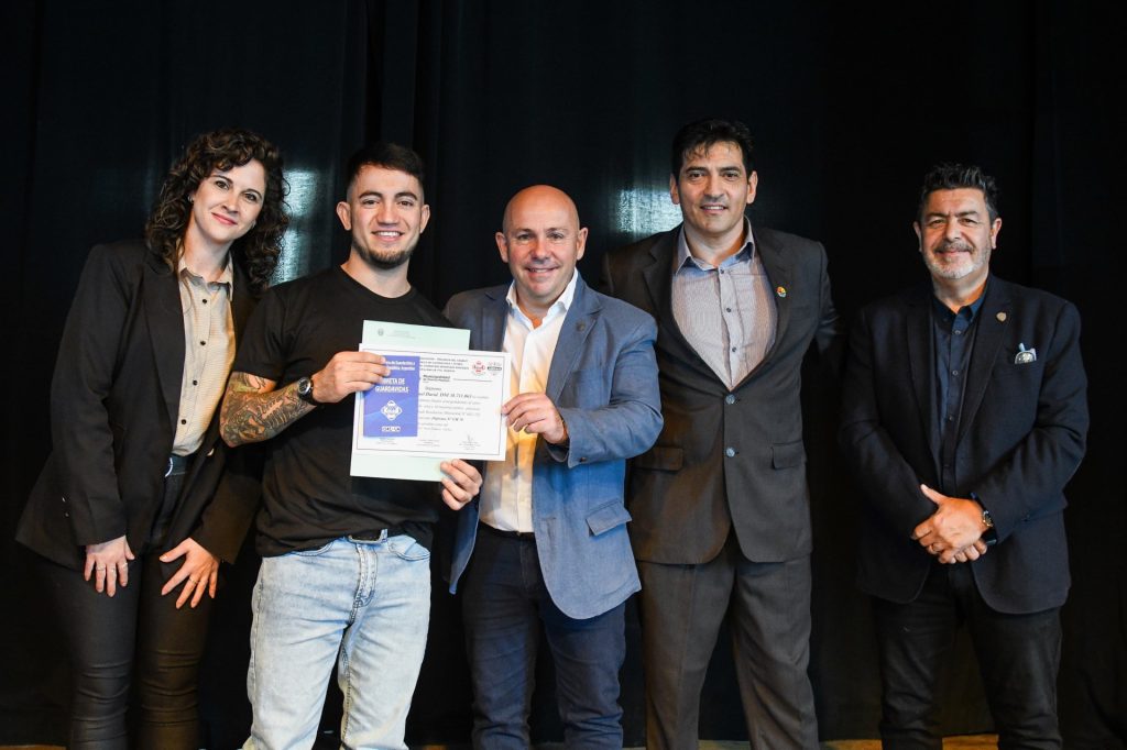En la entrega de certificados, Sastre estuvo acompañado por la secretaria de Gobierno, Leila Zanette; Adrián Escalante, en representación de SUGARA y AMGA; el subsecretario de Gobierno, Enzo Terrera, y Alejandro Ramírez y Gustavo Eckhardt, representantes de SUGARA de Rawson.