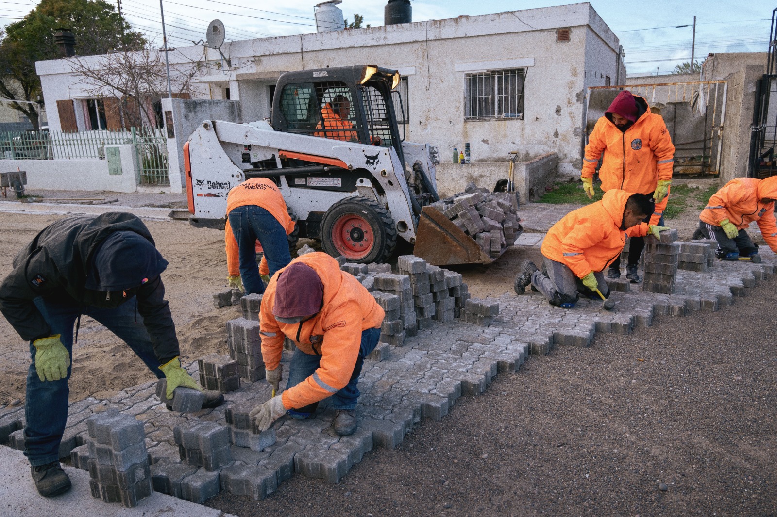 Las tareas actuales comprenden la instalación de adoquines y la ejecución de los cordones cuneta que estructuran el trazado. En la calle Cacique Epumer ya se completó la totalidad del cordón cuneta que sostiene el adoquinado, informó el subsecretario de Obras Públicas, Federico Figueroa.