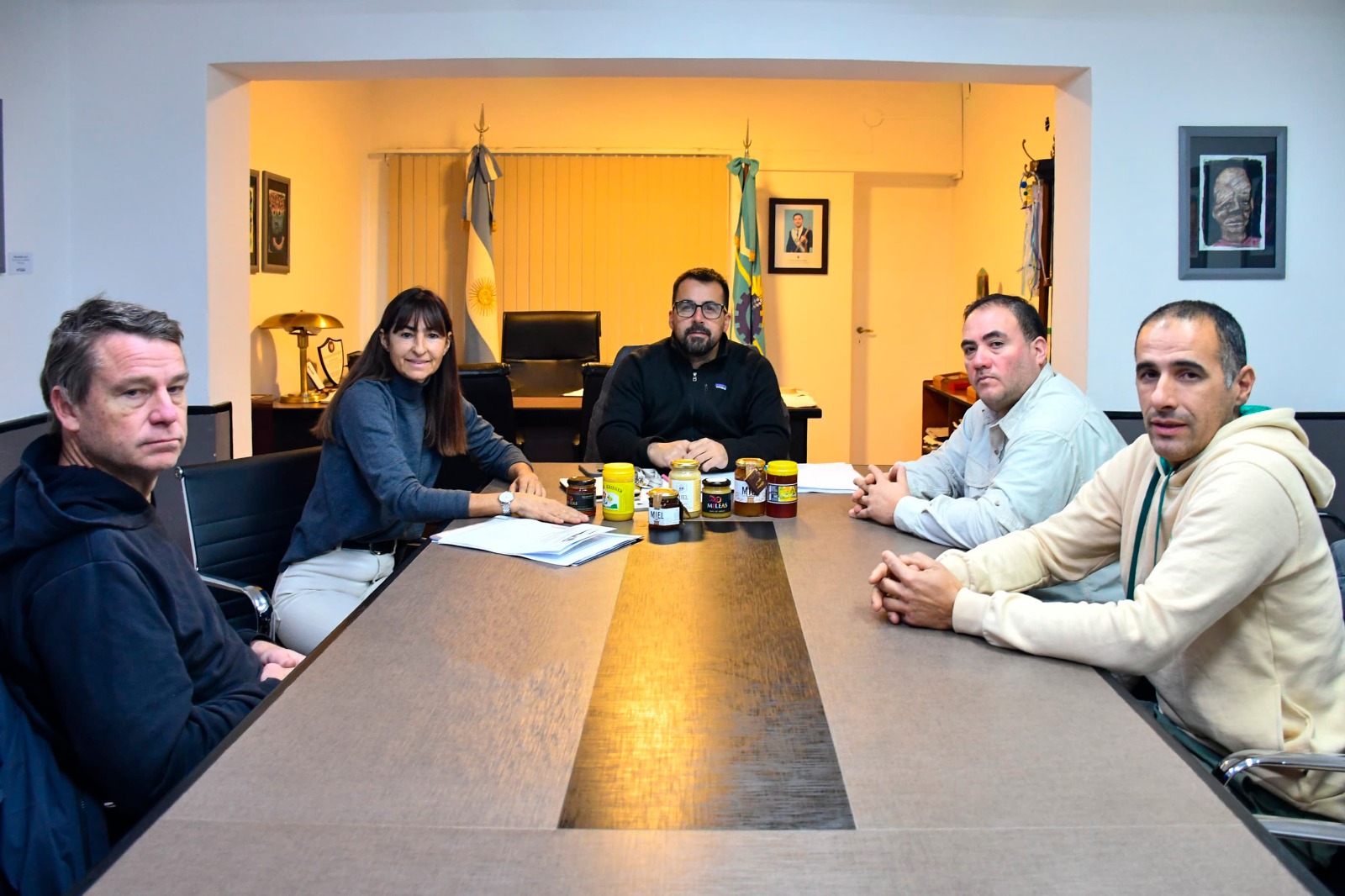 El intendente Matías Taccetta, junto a la directora de Desarrollo Productivo y Emprendedurismo, Paula Botto, mantuvo una reunión con representantes de la Asociación de Apicultores de la Comarca Los Alerces (AACLA). El encuentro tuvo como objetivo planificar la generación de una estrategia conjunta para visibilizar y potenciar las mieles locales.