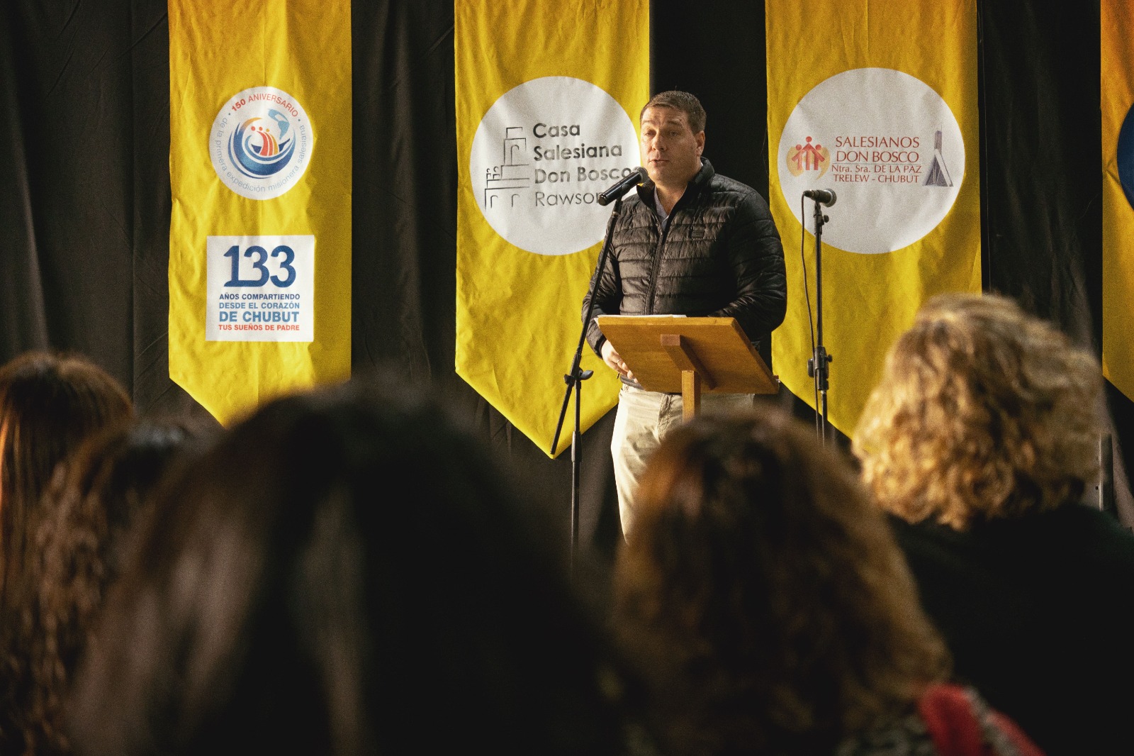 En su intervención, Biss resaltó el legado de los primeros misioneros llegados en 1892 a Rawson bajo la visión de Don Bosco, destacando su labor pionera al transformar un territorio inhóspito en un espacio de contención, educación y espiritualidad para los jóvenes.