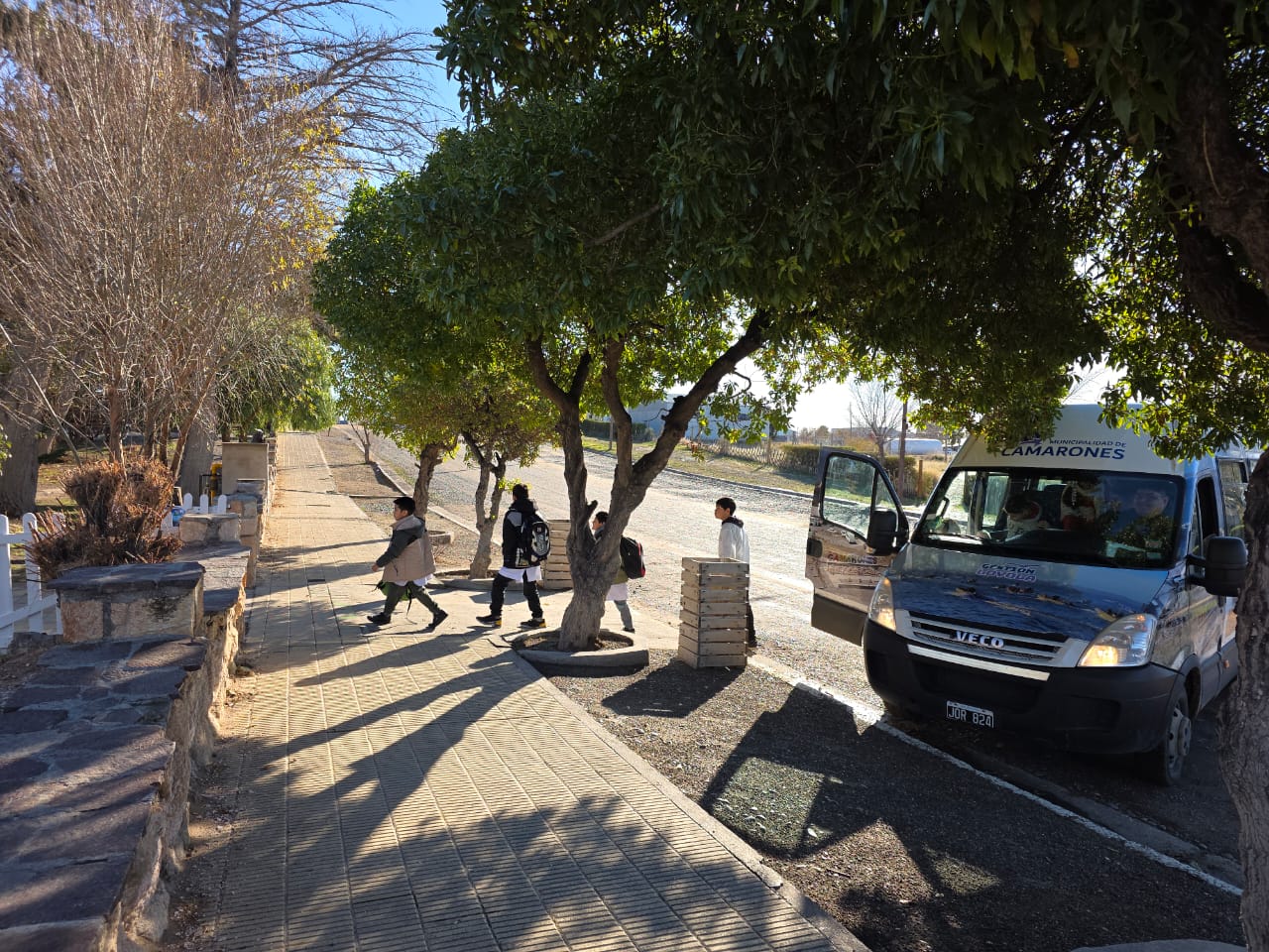 La Municipalidad de Camarones, a través de la gestión encabezada por la intendenta Claudia Loyola, informa que continuará brindando el servicio de transporte escolar gratuito para los estudiantes de la Escuela Primaria N.º 16 y la Escuela Secundaria Técnica N.º 721, como medida de acompañamiento ante las bajas temperaturas que afectan a la localidad.