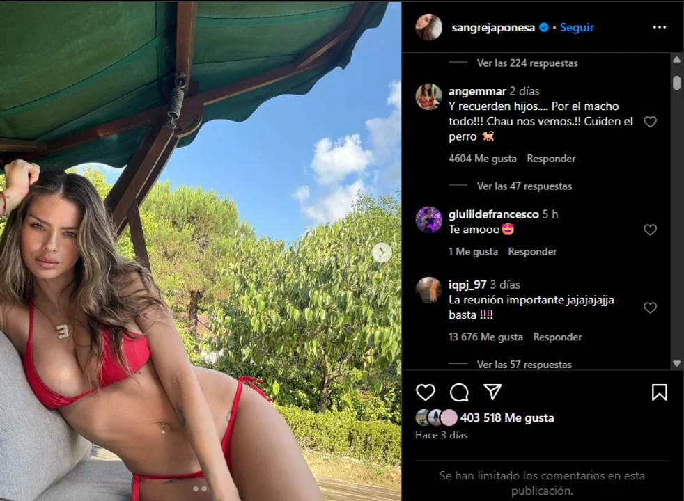 En ese contexto, la actriz argentina agregó una nueva página de críticas por haberse ido y dejar a sus hijos por su novio. A pesar de todos los comentarios negativos que recibe, responde y fuerte, pero sigue posando y captando seguidores en su cuenta de Instagram.
