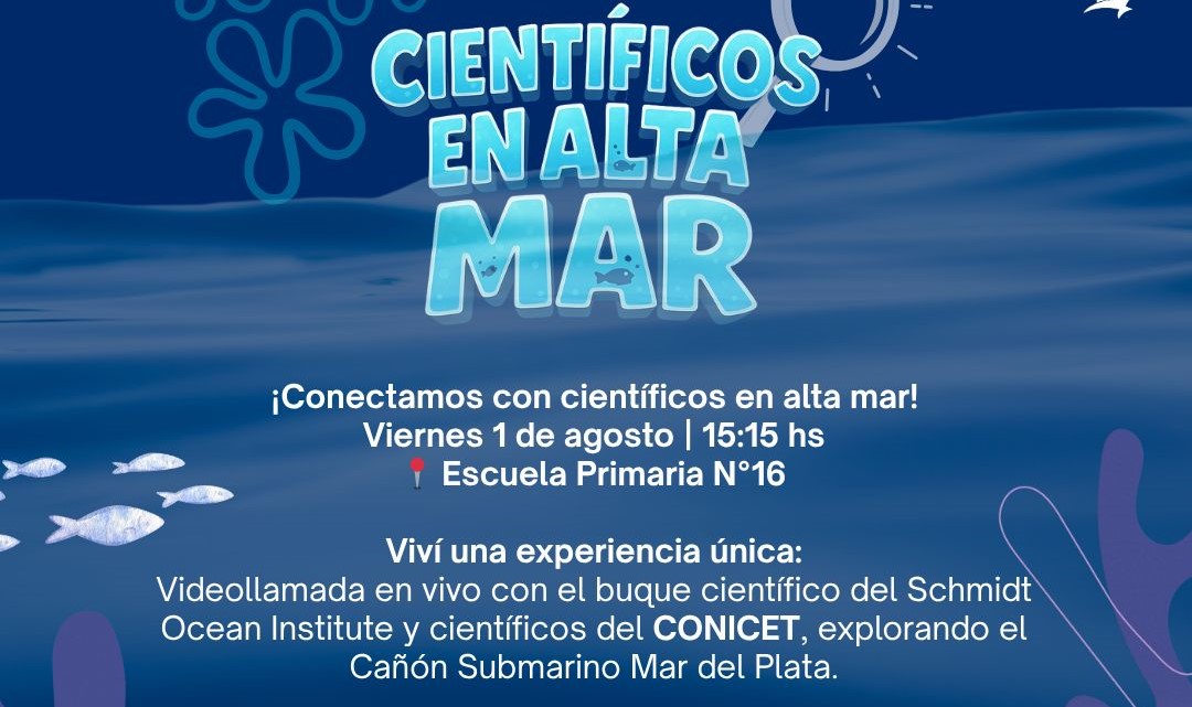 La actividad, denominada “Científicos en alta mar”, permitirá a los alumnos conectarse directamente con los especialistas que se encuentran explorando el Cañón Submarino Mar del Plata, uno de los ecosistemas marinos más fascinantes y desconocidos del litoral argentino.