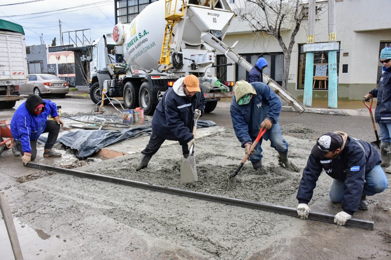 El Municipio de Trelew continúa con el plan integral de recuperación de arterias: este martes se realizó el hormigonado en la intersección de Mitre y Soberanía Nacional, un punto de alto tránsito en la zona céntrica.