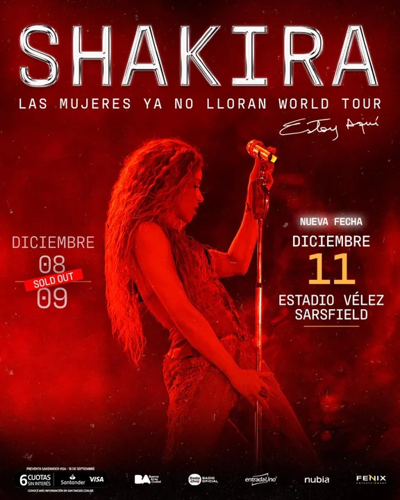 Tras agotar en tiempo récord las entradas para sus dos shows en el Estadio Vélez para el 8 y 9 de diciembre, a pedido del público, Shakira sumó una tercera fecha para volver a reencontrarse con sus fanáticos argentinos, sellando así su amor por nuestro país.