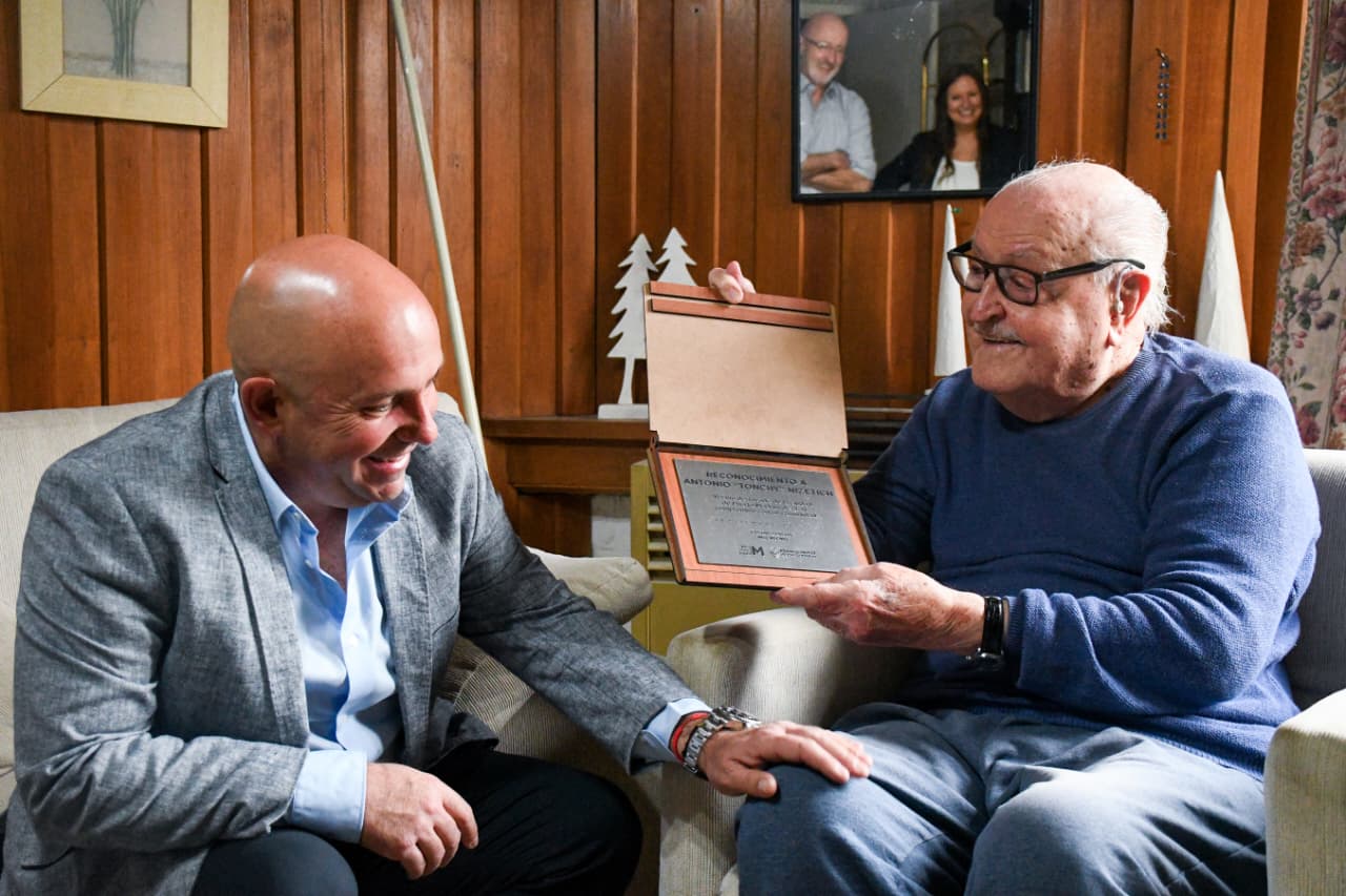 Puntualmente, el Intendente dijo: “Visitamos en su casa a Antonio ‘Tonchy’ Nizetich, un vecino entrañable de la ciudad de Puerto Madryn, a quien sorprendimos y le entregamos un reconocimiento por su gran compromiso con nuestra comunidad. Agradecemos a él y a toda su familia por abrirnos las puertas de su hogar y por el hermoso momento que disfrutamos, compartiendo una linda charla con muchas anécdotas”.