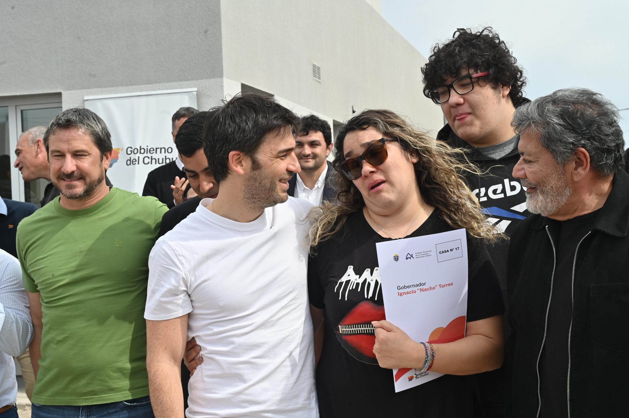 El gobernador del Chubut, Ignacio “Nacho” Torres, encabezó este jueves la entrega de 43 vviendas a familias de Trelew, en el marco del compromiso de la Provincia para dar respuesta a la demanda habitacional de la comunidad.