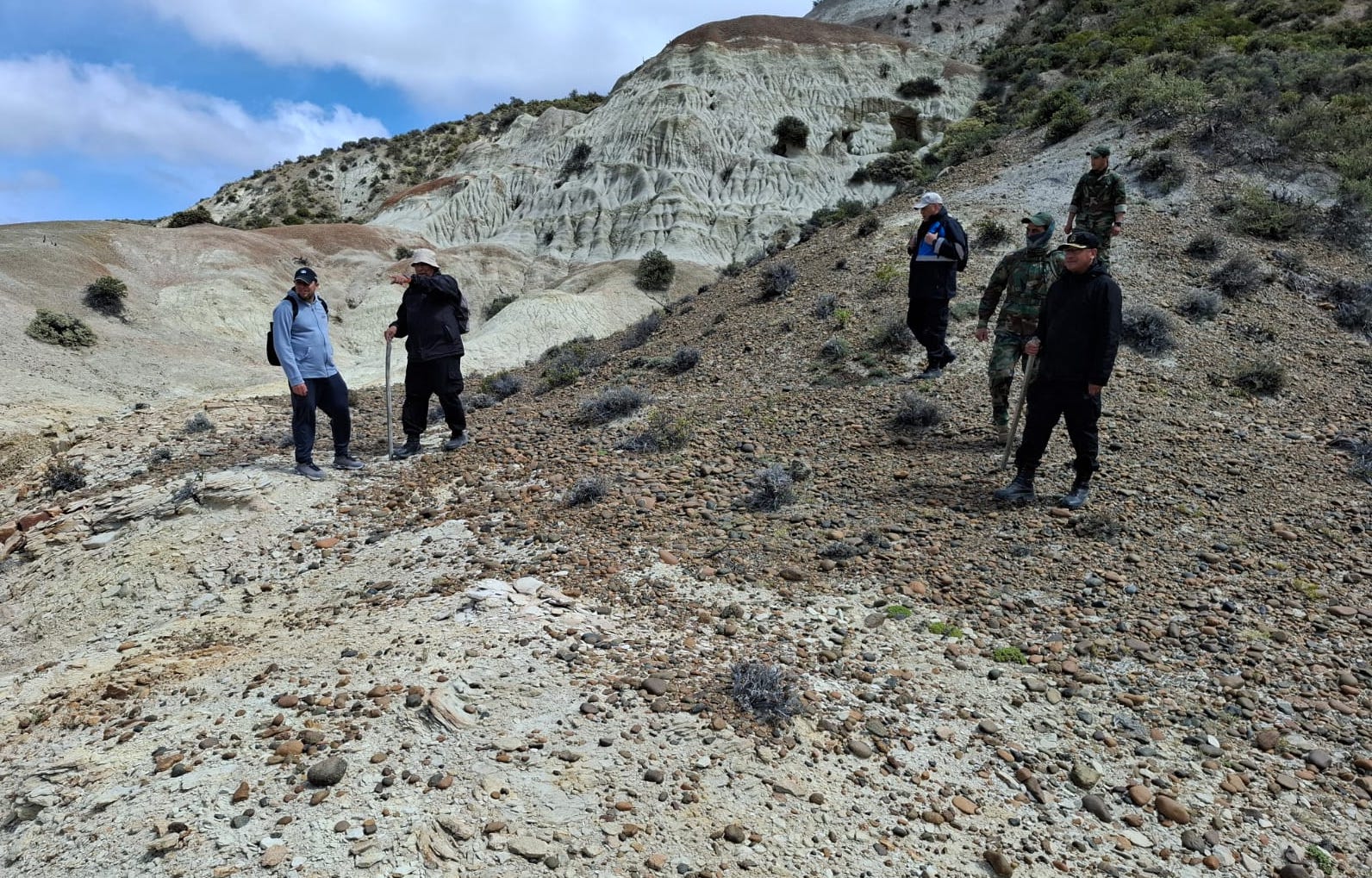 Asimismo, se llevó a cabo un relevamiento terrestre por el cañadón en dirección al mar, cubriendo un radio de 9 kilómetros.