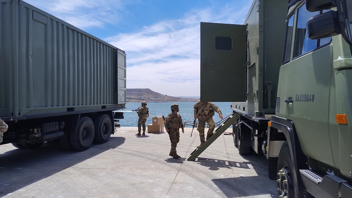 Ochenta hombres y veintidós vehículos pertenecientes al Batallón Logístico 9 se desplegaron en el muelle de ultramar incluyendo medios de apoyo propios como camiones contenedores, cocina, duchas y potabilizadores de agua con el objetivo de evaluar eventuales procedimientos con equipos de este volumen dentro de la estructura del Puerto.