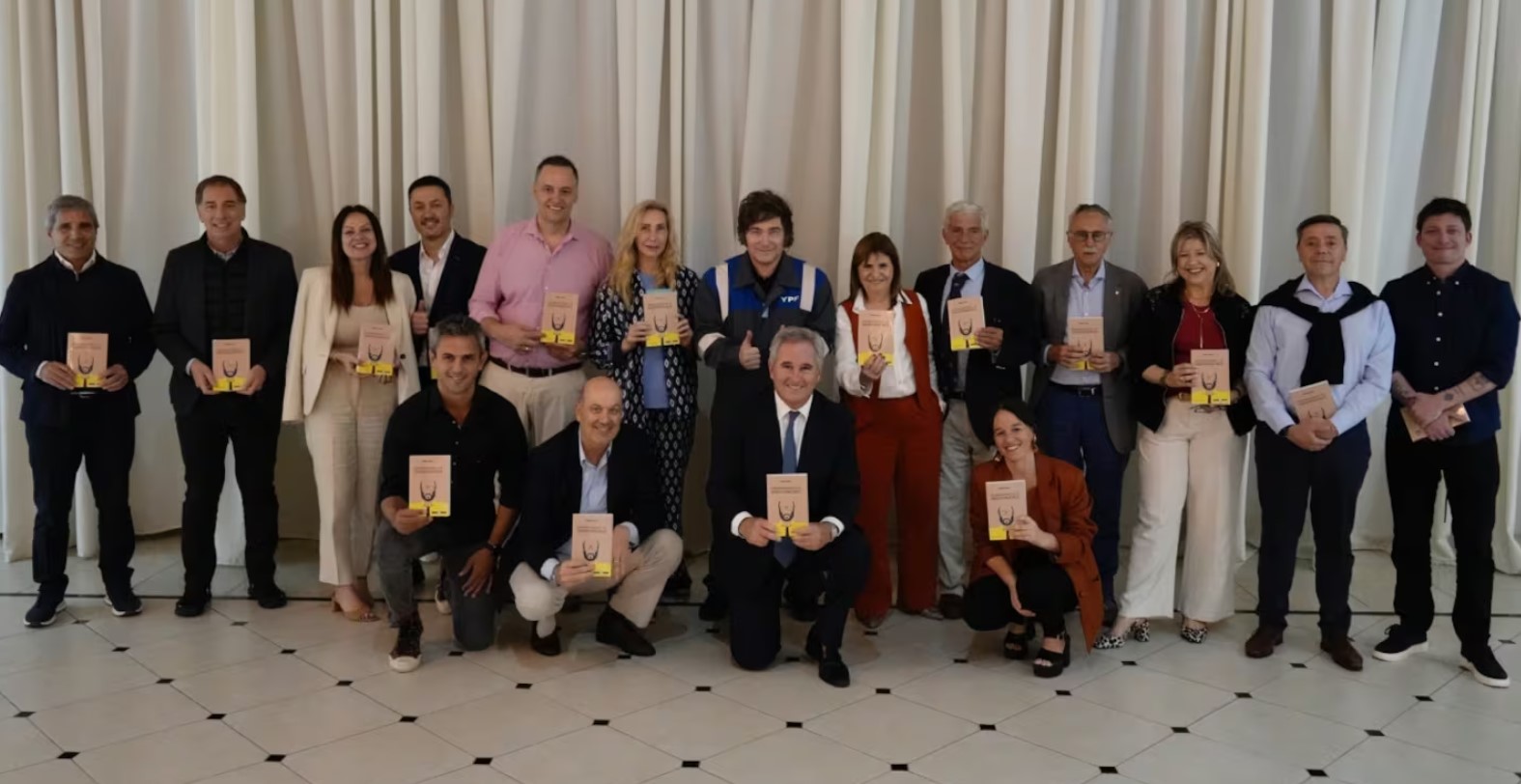 Antes de comenzar la reunión, el Presidente les regaló a todos los miembros de su Gabinete una copia del libro Defendiendo lo indefendible del economista Walter Block. Tras el obsequio, posaron juntos en una foto que compartió la Oficina del Presidente en X.
