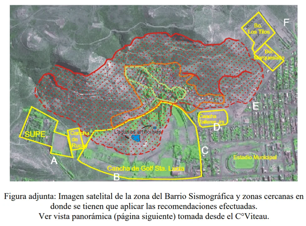 Conforme al escrito “Estudio de Peligrosidad Geológica en el Barrio Sismográfica”, el cual fue elaborado hace 24 años por la Dirección de Geología Ambiental y Aplicada del Instituto de Geología y Recursos Minerales del SEGEMAR, existen tres ejes importantes que las autoridades deben prestar atención y abordar: materiales removidos naturalmente, movimientos de ladera y reuniones con vecinos para que comprendan la problemática.