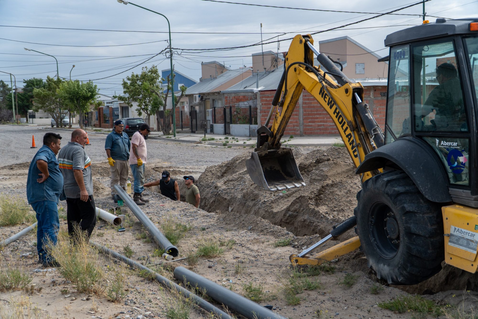 En esta etapa, las tareas se concentran en la ejecución de la red de agua, una obra técnicamente compleja que requiere la vinculación mediante un nexo de cañería de gran magnitud hacia el centro de distribución, diseñada a partir de un trabajo previo de planificación y consenso con los actores involucrados.