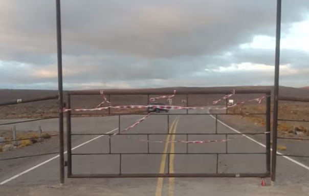 Un tramo de asfalto ubicado en el sector del empalme con la Ruta Provincial N° 12, en la zona de Sierra Colorada, volvió a generar controversia luego de que se instalara un pórtico que impide la circulación.
