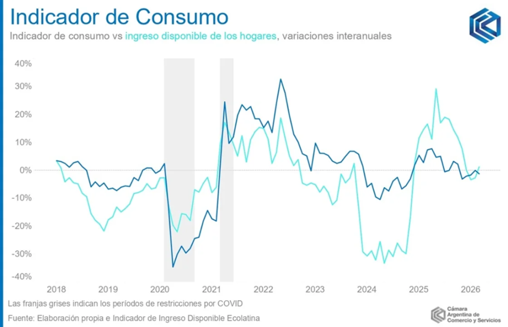 La conclusión que sacó la Cámara Argentina de Comercio y Servicios, a la luz de la información presentada, fue que “el consumo masivo pausó su recuperación, mientras que el consumo de bienes durables enfrenta meses que serán fundamentales para determinar el carácter del año tras un 2024 y 2025 de notable mejoría”.